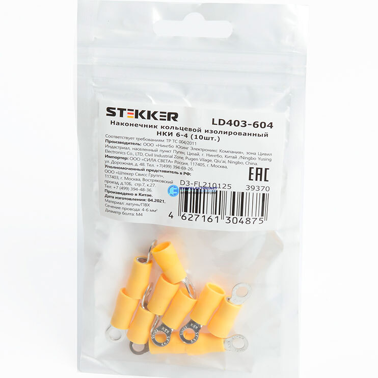 Наконечник кольцевой изолированный НКИ 6-4, LD403-604 (DIY упаковка 10 шт), код 39370, производитель FERON