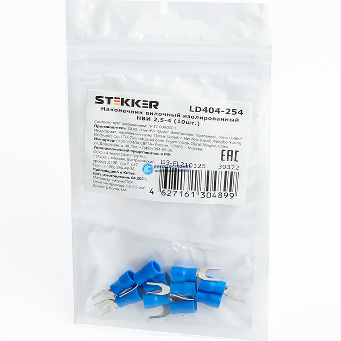 Наконечник вилочный изолированный НВИ 2,5-4, LD404-254 (DIY упаковка 10 шт), код 39372, производитель FERON