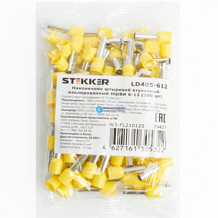 Наконечник штыревой втулочный изолированный НШВИ 6-12 (упаковка 100 шт), LD405-612, код 39437, производитель FERON
