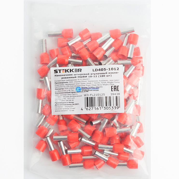 Наконечник штыревой втулочный изолированный НШВИ 10-12 (упаковка 100 шт), LD405-1012, код 39438, производитель FERON