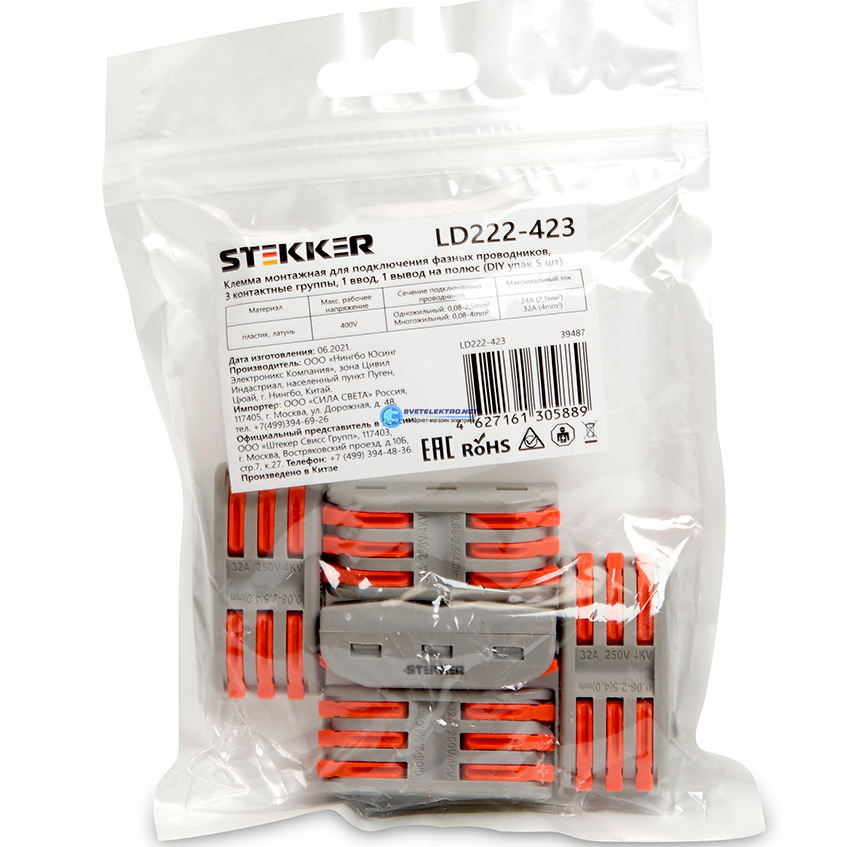 Клемма монтажная для фазных проводников, контактные группы, (DIY упак 5 шт),, код 39487, производитель Stekker