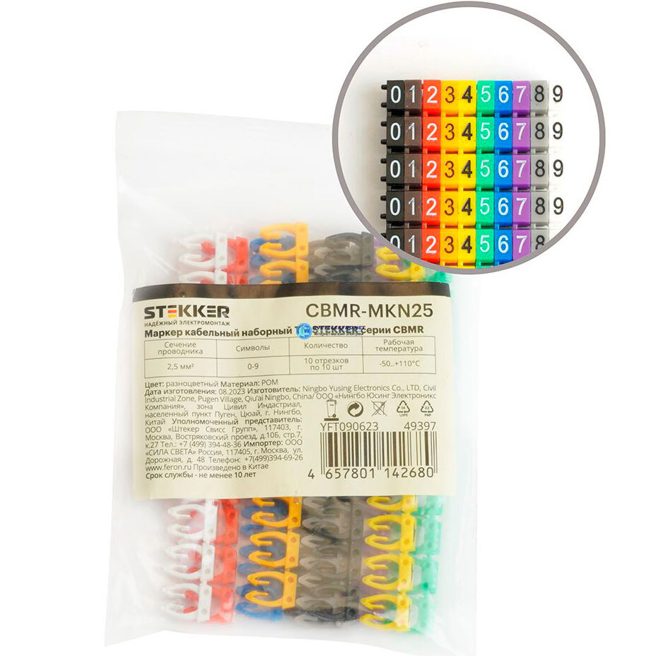 Маркер кабельный наборный 0-9 2,5мм2 (100шт/упак), код 49397, производитель Stekker