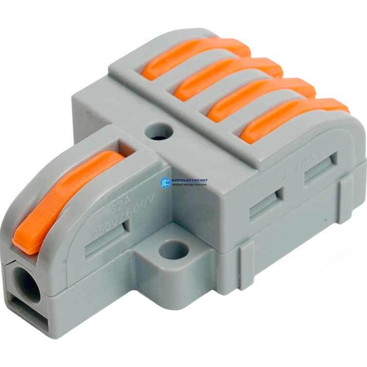 Клемма монтажная для фазных проводников, 1 вход, 4 выхода, наборная , (DIY упак 10 шт) LD220-104 49792 Stekker