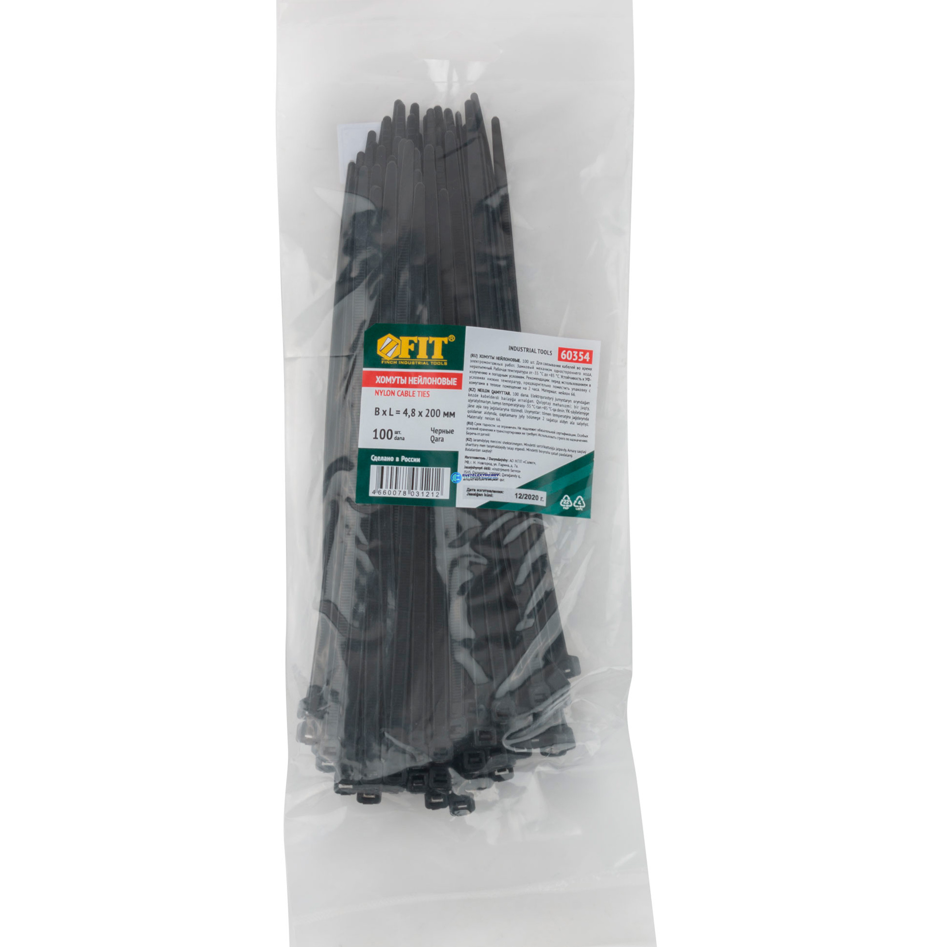 Хомуты нейлоновые для проводов, черные 100 шт., 4,8х200 мм, код 60354, производитель FIT РОС