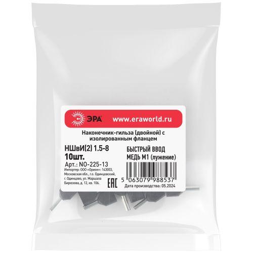 Наконечник-гильза с изолированным фланцем (упаковка 10 шт.) NO-225-13 (двойной) НШвИ(2) 1,5-8, код Б0063306, производитель ЭРА
