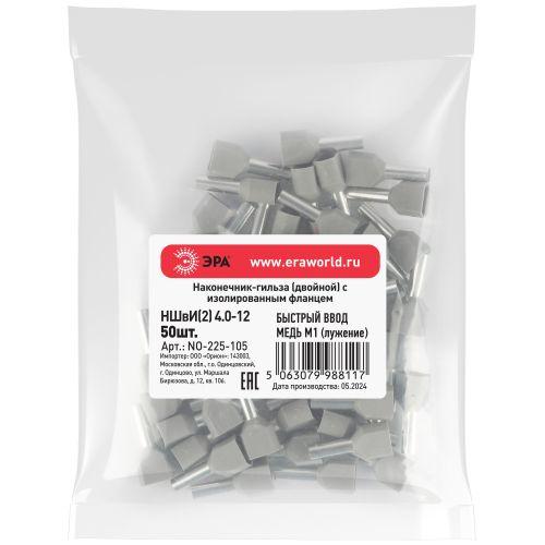 Наконечник-гильза с изолированным фланцем (упаковка 50 шт.) NO-225-105 (двойной) НШвИ(2) 4,0-12, код Б0063314, производитель ЭРА