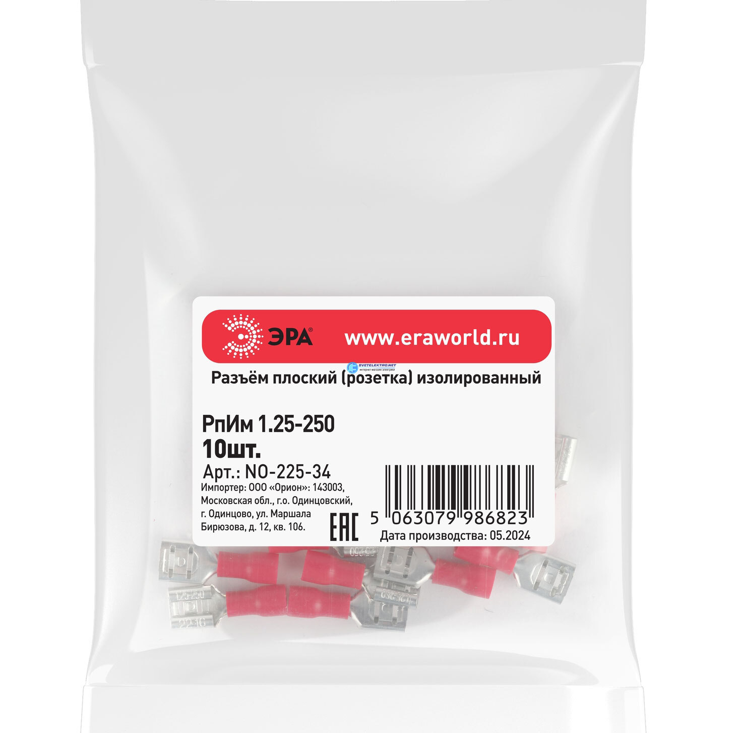 Разъем плоский NO-225-34 РпИм 1.25-250 изолированный «розетка» (упаковка 10 штук), код Б0063358, производитель ЭРА