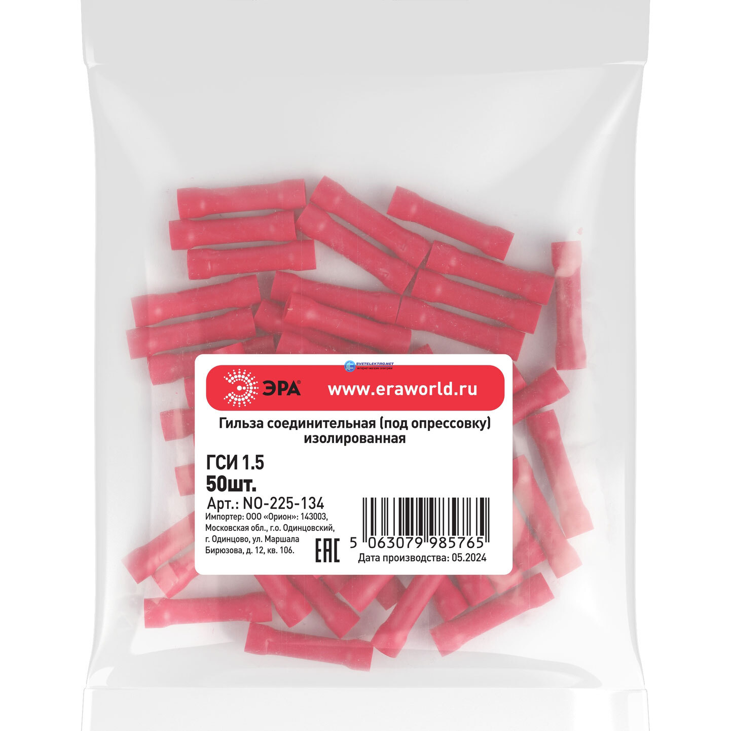 Гильза соединительная изолированная под опрессовку (упаковка 50 шт.) NO-225-134 ГСИ 1.5, код Б0063398, производитель ЭРА