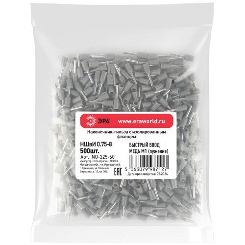 Наконечник-гильза с изолированным фланцем (упаковка 500 шт.) NO-225-60 НШвИ 0,75-8, код Б0063417, производитель ЭРА