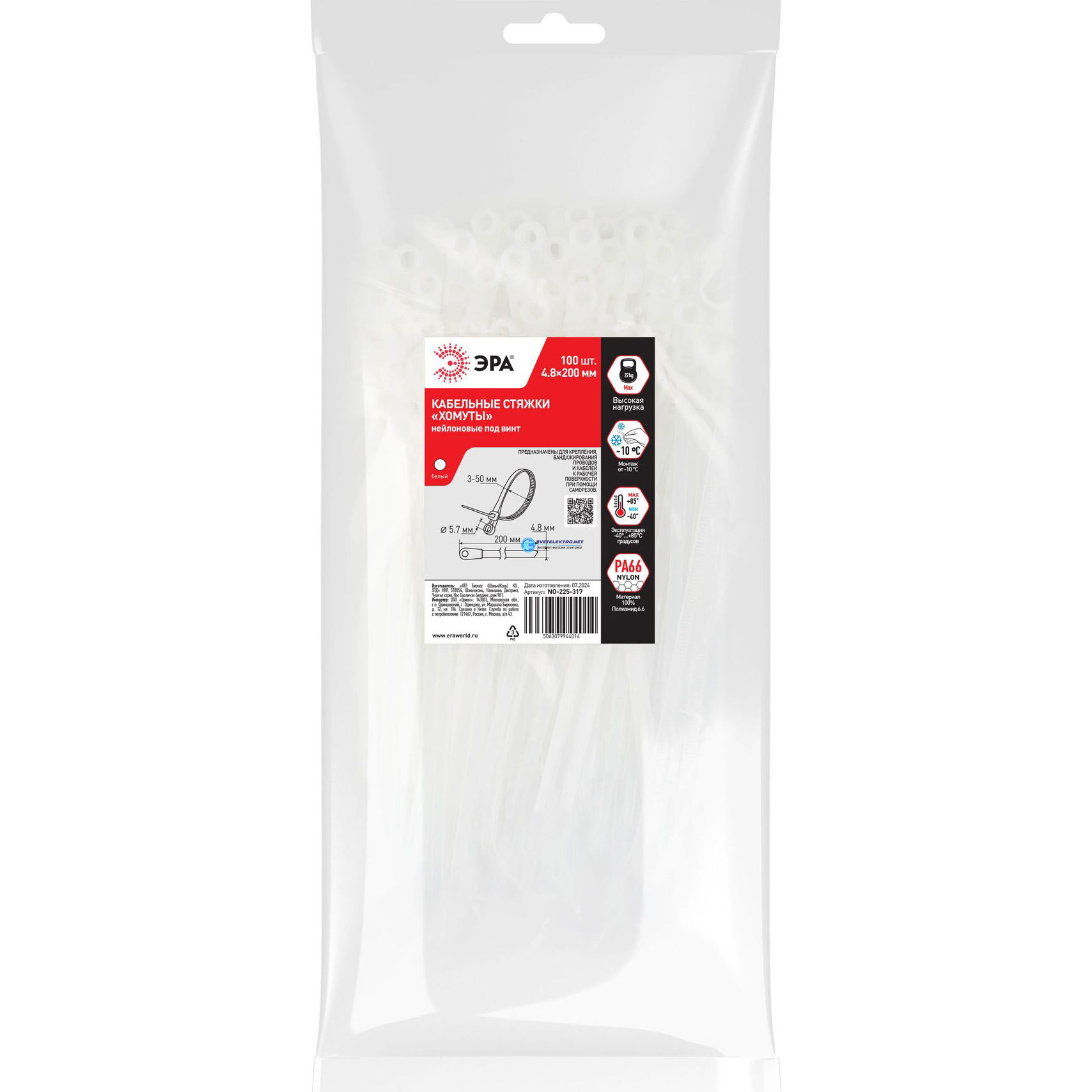 Стяжка кабельная нейлоновая (хомут) под винт 4.8 х 200 мм белая (100 шт/уп) NO-225-317, код Б0066045, производитель ЭРА