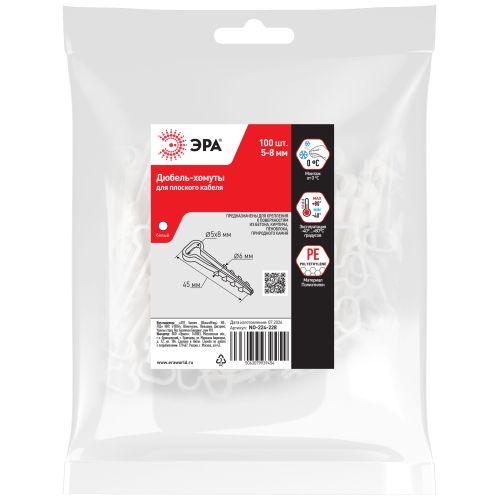 Дюбель-хомут для плоского кабеля 5-8 мм белый (100 штук) NO-224-228, код Б0066282, производитель ЭРА