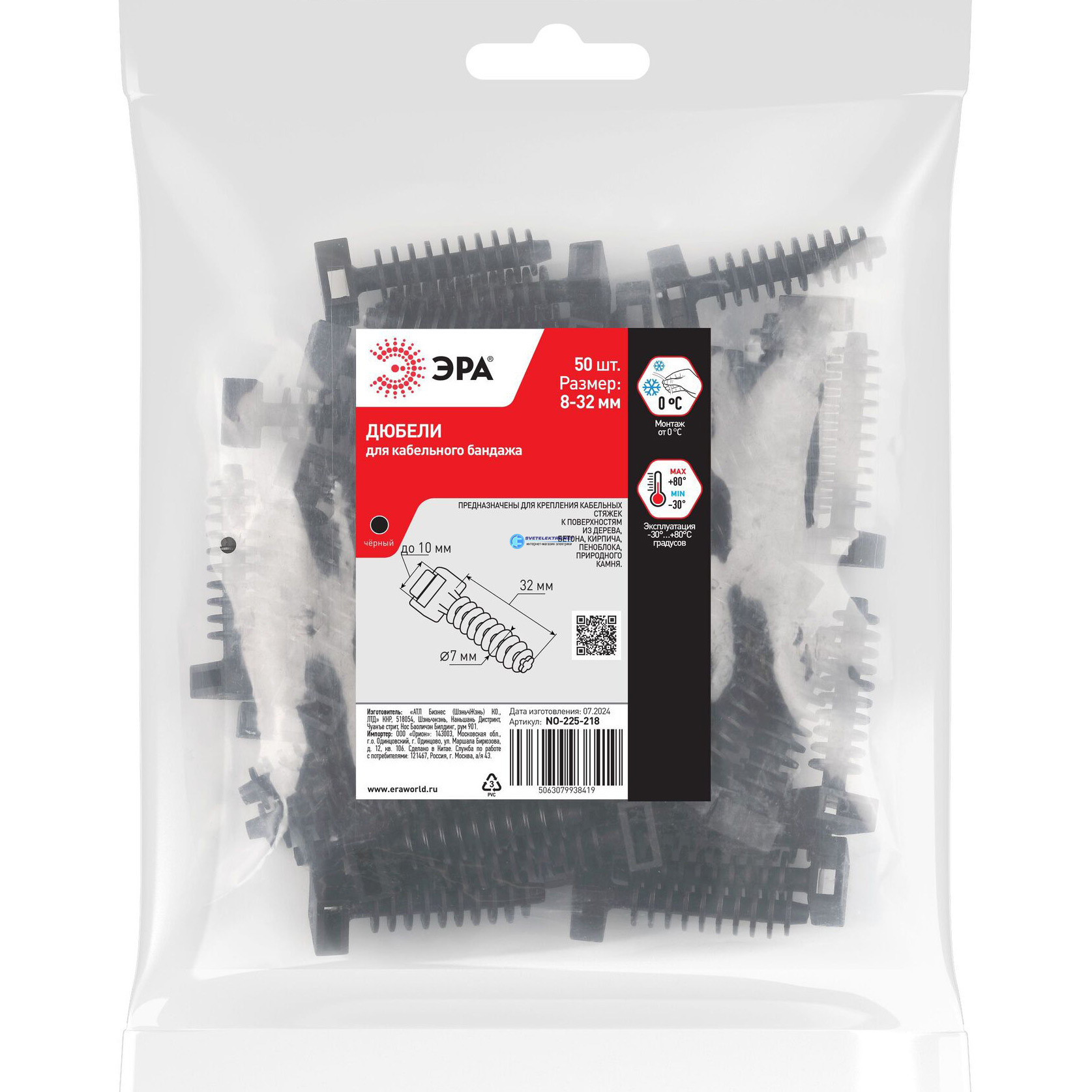 Дюбель для бандажа кабельного 8-32 мм чёрный (50 штук) NO-225-218, код Б0066363, производитель ЭРА
