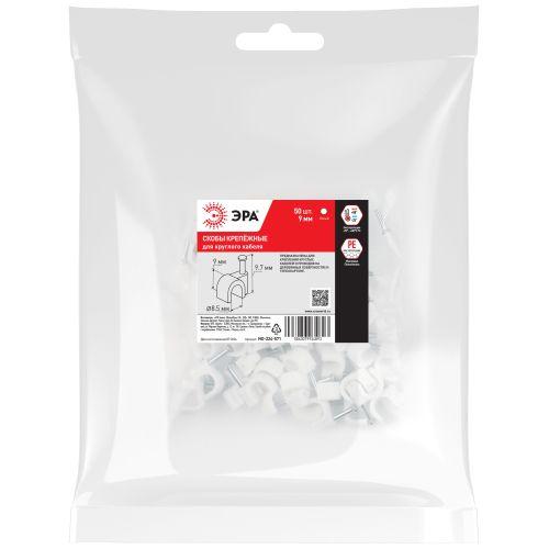 Скоба пластиковая крепежная круглая 9 мм белая NO-224-571 (50 шт/уп), код Б0066615, производитель ЭРА