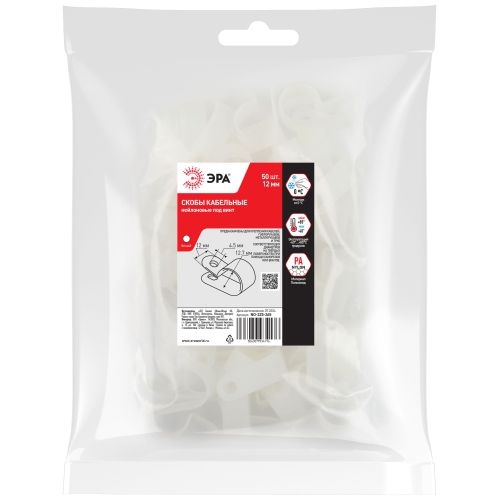 Скоба кабельная нейлоновая под винт 12 мм белая шт, код Б0066645, производитель ЭРА