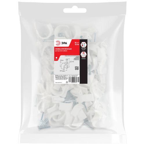 Скоба пластиковая крепежная круглая 20 мм белая NO-224-577 (50 шт/уп), код Б0066658, производитель ЭРА