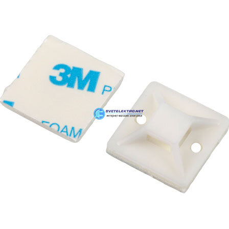 | Преимущества: | Быстрое крепление на гладких поверхностях за счет самоклеющейся базы|Крепление кабелей там, где сверление нежелательно|Монтаж без инструментов|Дополнительные отверстия в основании для крепления саморезами|Изготвлен из полипропилена|Адгезивная основа 3М: |