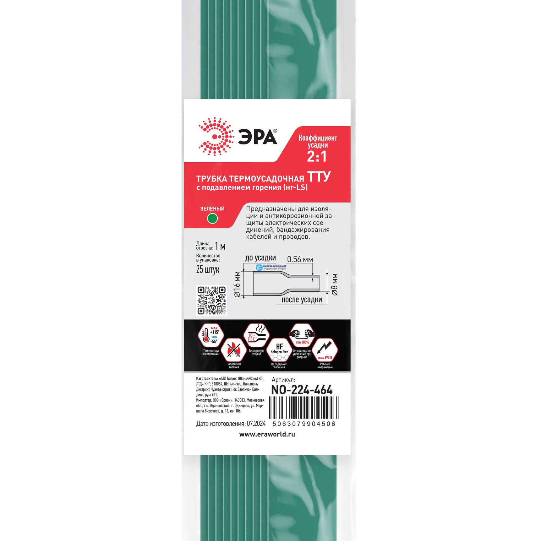 Трубка термоусадочная ТТУ нг-LS 16/8 зелёная в отрезках по 1 м NO-224-464, код Б0067473, производитель ЭРА