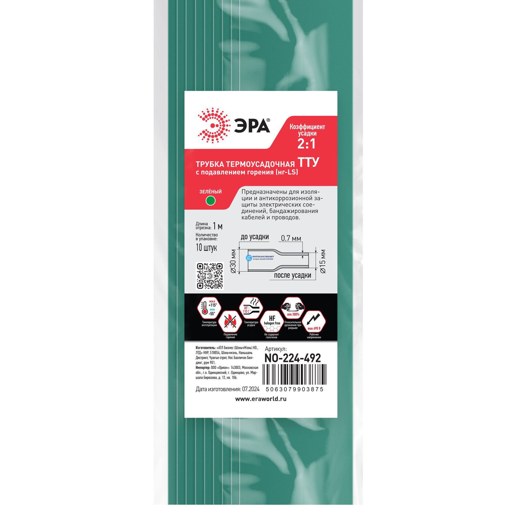 Трубка термоусадочная ТТУ нг-LS 30/15 зелёная в отрезках по 1 м NO-224-492, код Б0067554, производитель ЭРА