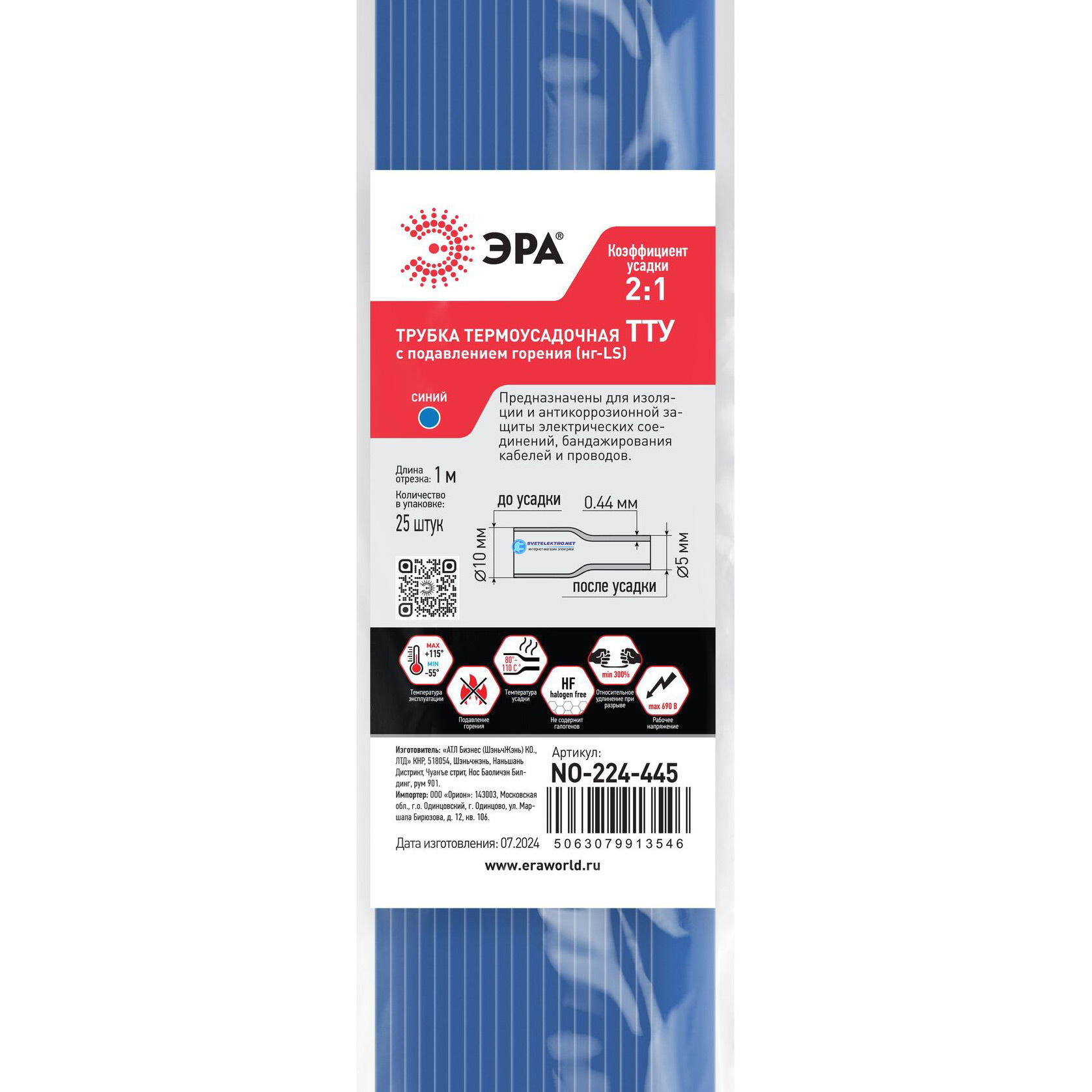 Трубка термоусадочная ТТУ нг-LS 10/5 синяя в отрезках по 1 м. NO-224-445, код Б0067682, производитель ЭРА