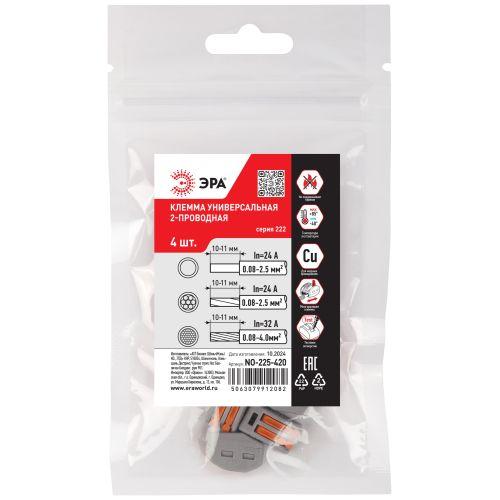Клемма универсальная 222-412 с рычагами 2-проводная 0.08-2.5/4 мм2 NO-225-420 (упаковка 4 шт.), код Б0067905, производитель ЭРА
