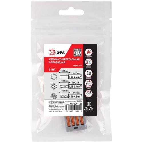 Клемма универсальная 222-414 с рычагами 4-проводная 0.08-2.5/4 мм2 NO-225-422 (упаковка 2 шт.), код Б0067939, производитель ЭРА