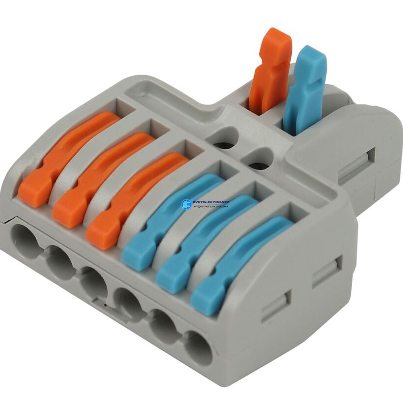 | Преимущества: | Позволяет создать безопасное разветвлённое проходное соединение|Дает возможность легко и быстро отсоединить провода, изменить схему, переключить питание на другую цепь или устройство|Позволяет оперативно соединять или наращивать провода, сделанные из разных материалов и разного сечения|Обеспечивает многоразовый монтаж и демонтаж всех типов медных проводников сечением до 4.0 мм2: одножильных, многожильных и тонкопроволочных|В конструкции корпуса предусмотрены выступы с крепежными отверстиями для установки на плоскую поверхность|Исходное положение рычага исключает случайное разъединение подключённого проводника|Изделия обладают тестовыми отверстиями, которые дают возможность измерения электрических параметров цепи соединения|Корпус выполнен из полиамида 6.6. Не поддерживает горение, не содержит галогенов по UL94V4: |