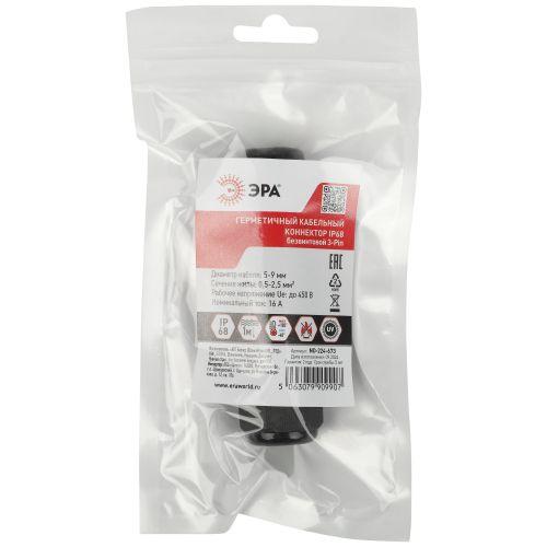Коннектор кабельный прямой 3-Pin 0.5-2.5 мм2 NO-224-673 безвинтовой IP68 Б0068045 ЭРА
