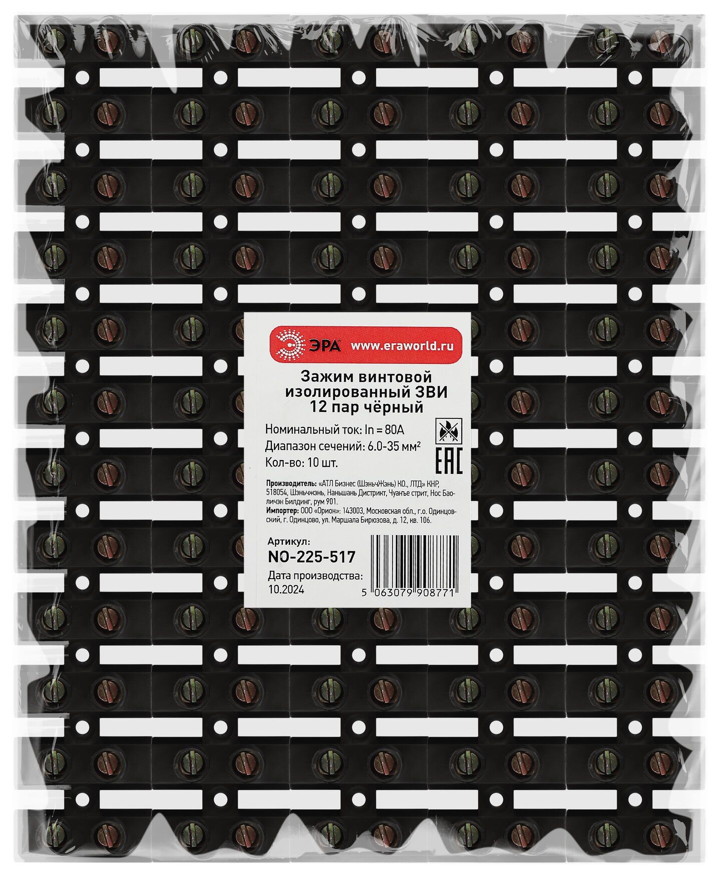 Зажим винтовой изолированный ЗВИ-нг 80А (6.0-35 мм2) NO-225-517 12 пар чёрный, код Б0068053, производитель ЭРА