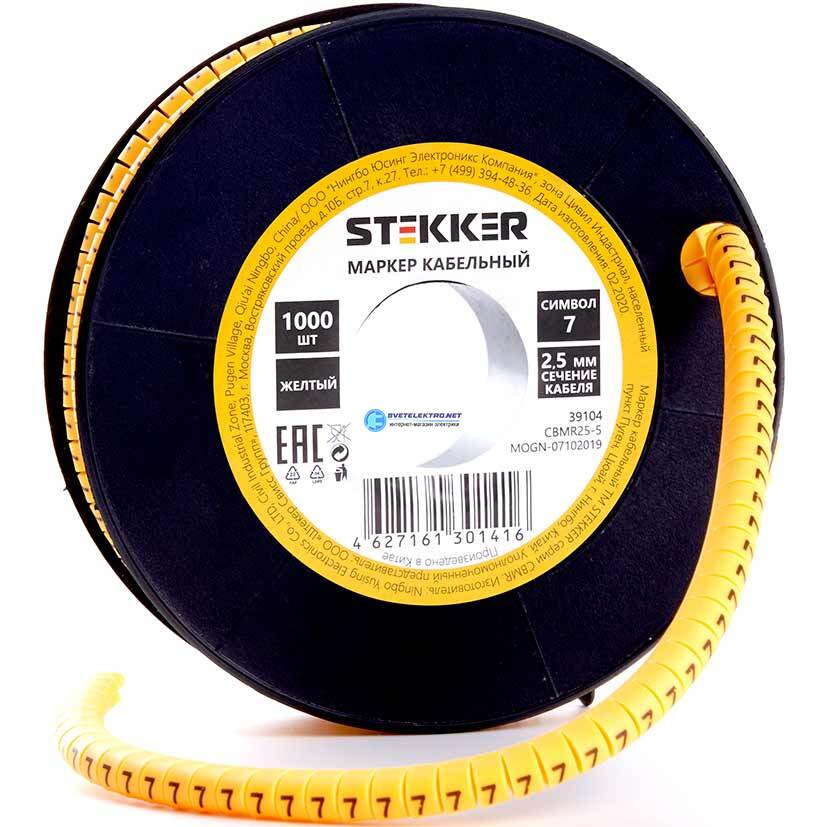Кабель-маркер для провода сеч.4мм, желтый (500шт в упак), код 39117, производитель Stekker