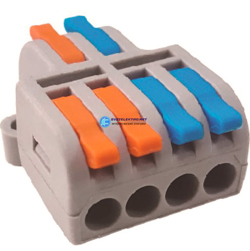 Клеммник 2 в 4 конт. крас./син.клав. зажимн.электромонт.проходн. (4.0кв.мм) DF-42 Fucon