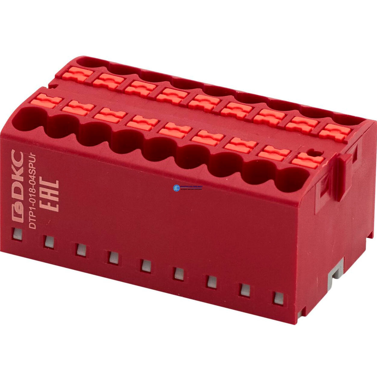 Блок распределительный, зажим push-in, точек подключения 2,5 кв.мм, красный, код DTP1-018-04SPUR, производитель DKC