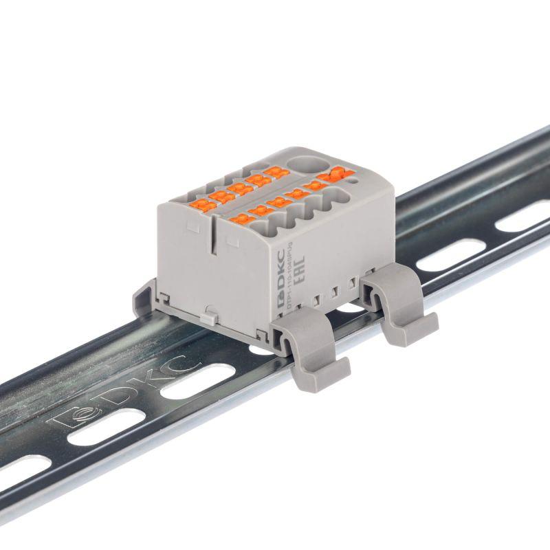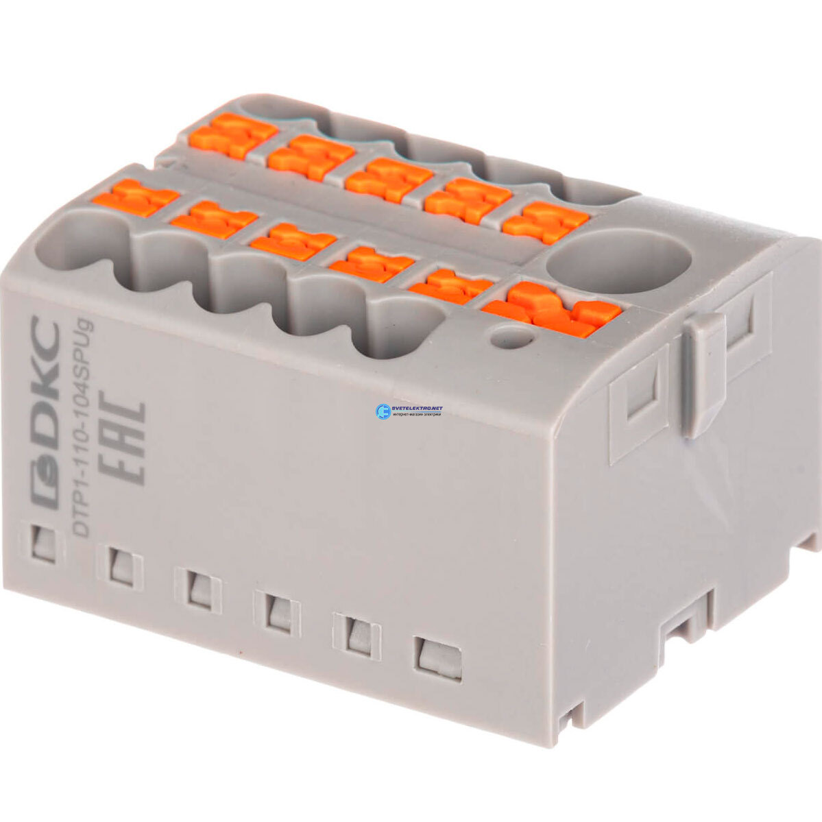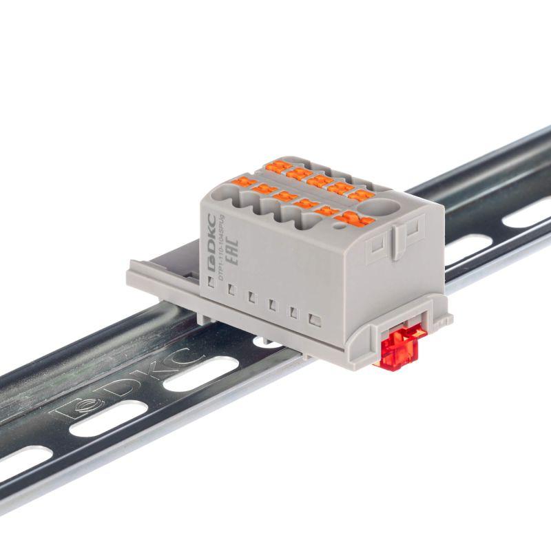 Блок распределительный, зажим push-in, ввод 6 кв.мм, 0 точек подключения 2,5 кв.мм, красный, код DTP1-110-104SPUR, производитель DKC