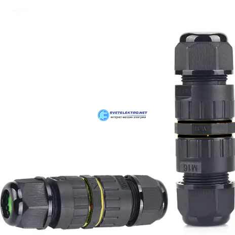 Коннектор кабельный 3 конт. электромонт. IP68, для соед. 2-х кабелей (сеч. пров. 0.5 - 1.5 кв.мм/ под винтовые зажимы), кабель-вводы под диам. 3.5 - 7 EW-M16-3P Fucon