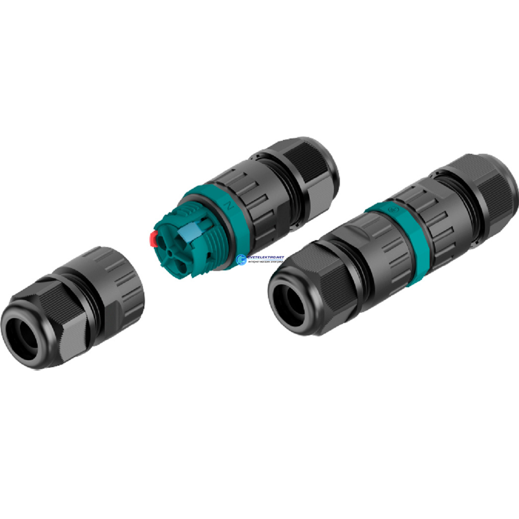 Коннектор кабельный 2 конт. электромонт. IP68, для соед. 2-х кабелей (сеч. пров. 0.5 - 2.5 кв.мм/ под пружинные зажимы), кабель-вводы под диам. 5.0 - EW-P20-2P 5-9mm Fucon