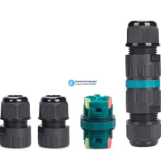 Коннектор кабельный конт. электромонт. IP68, для соед. 2х кабелей (сеч. пров. 0.5 2.5 кв.мм/ под пружинные зажимы), под диам. 9.0, код EW-P20-3P 9-12mm, производитель Fucon