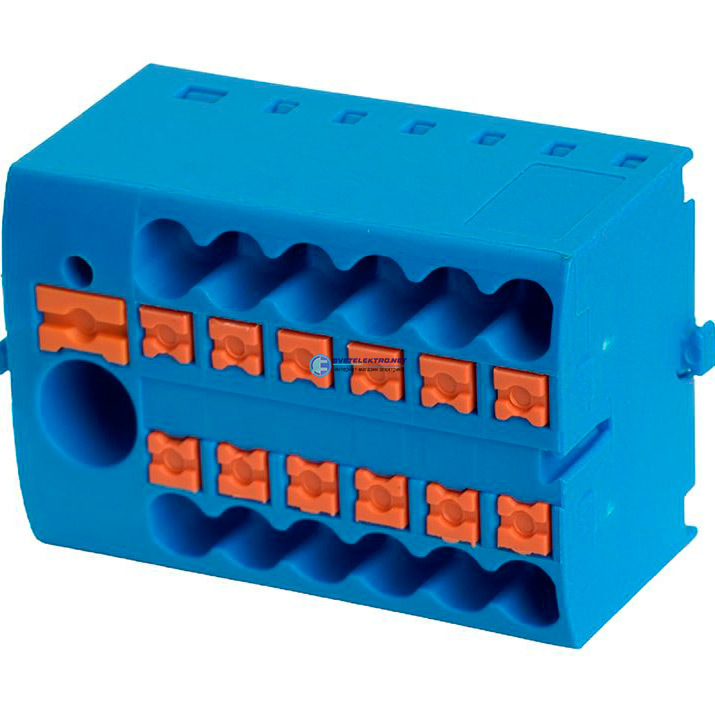 Зажим блок распределительный РТ на 12 точек 2,5мм2 690в 41А интегрированное питание 1 точка синий STEKKER LD580 PTFIX 6-12/25 49754 Stekker