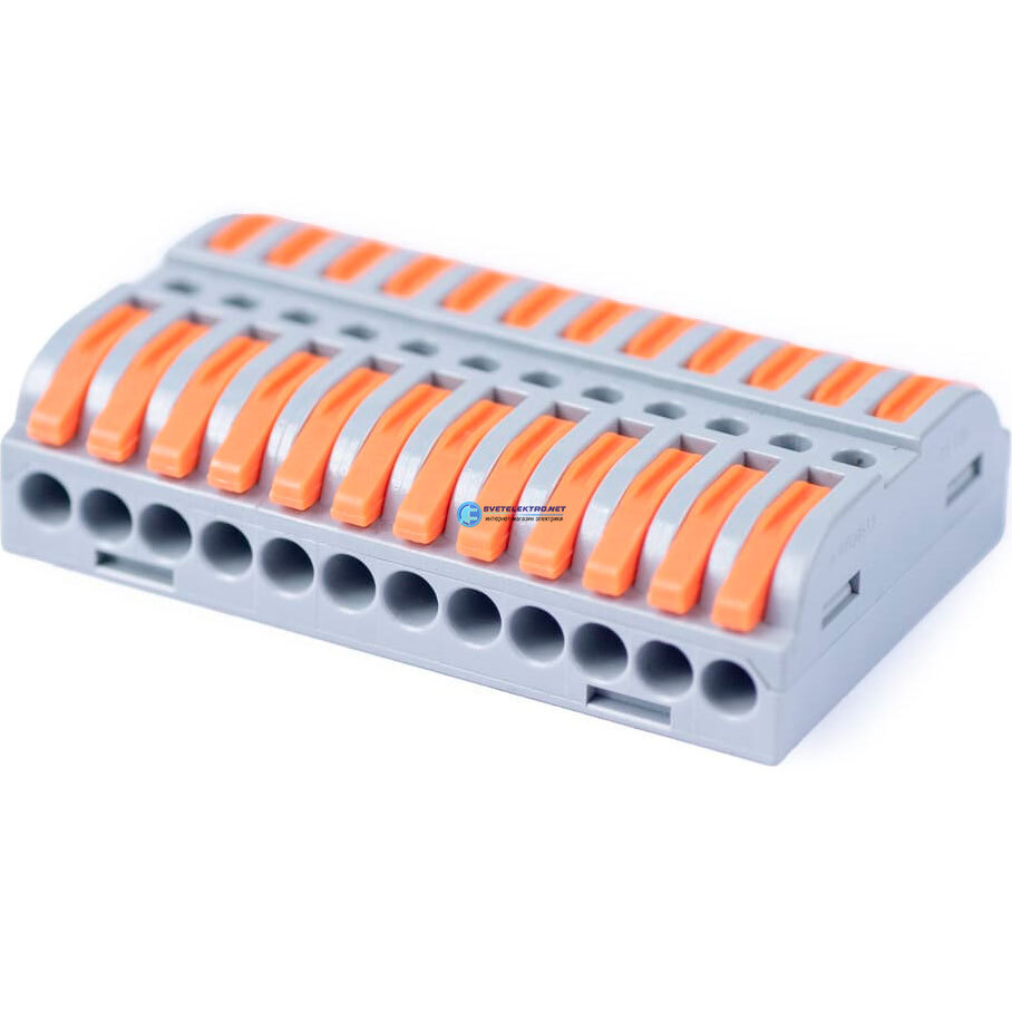 Клемма соединительная универсальная проходная 12 полюсов с рычагом 0,08-2,5/4,0 (1шт MX223-12 Cabeus