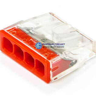 Клемма монтажная быстроразъемная сечение 0,5 - 2,5 мм 4-проводная прозрачная / красная (100 шт/уп), код PR08.22865, производитель Промрукав