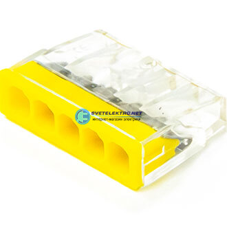 Клемма монтажная быстроразъемная сечение 0,5 - 2,5 мм 5-проводная прозрачная / желтая (50 шт/уп), код PR08.22866, производитель Промрукав