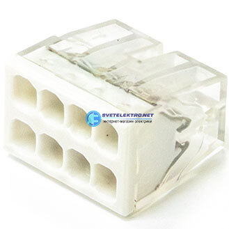 Клемма монтажная быстроразъемная сечение 0,5 - 2,5 мм 8-проводная прозрачная / белая (50 шт/уп), код PR08.22868, производитель Промрукав