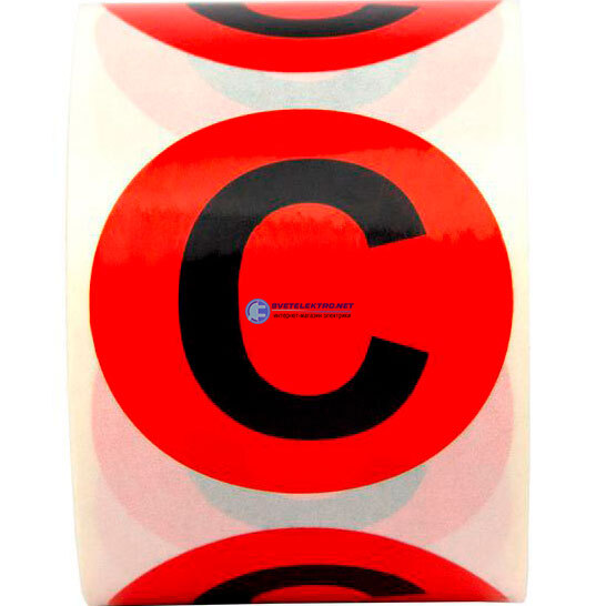 "Маркировка электрических шин. Диаметр 40мм, круг. Цвет красный, символ ""С"" черного цвета. Упа ковка 500 шт.", код SL-D40-C-RD, производитель DKC