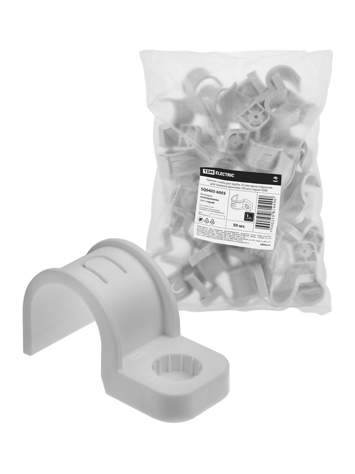 Крепеж-скоба для трубы 25 мм односторонняя для прямого монтажа 50 шт. серая, код SQ0405-6003, производитель TDM
