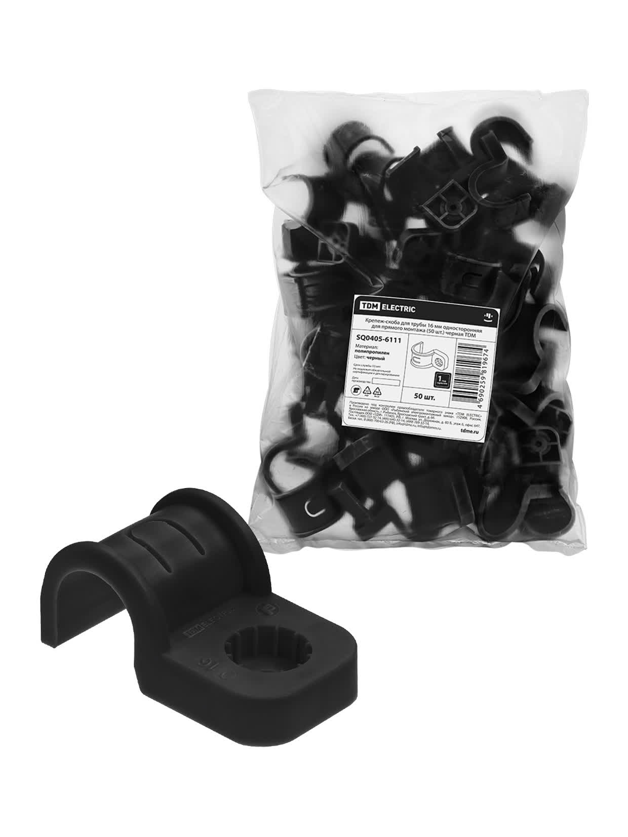 Крепеж-скоба для трубы 16 мм односторонняя для прямого монтажа 50 шт. черная, код SQ0405-6111, производитель TDM