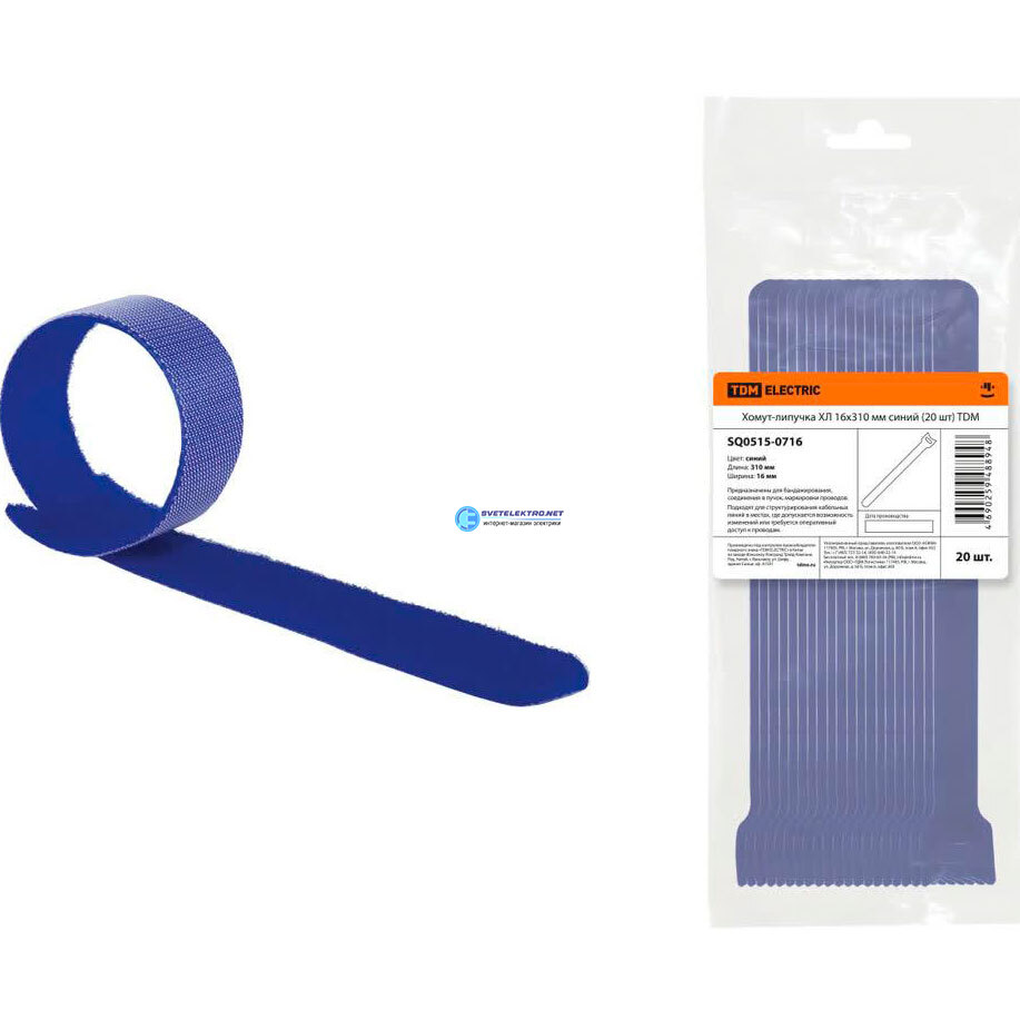 Хомут-липучка ХЛ 16х310 мм синий (20 шт), код SQ0515-0716, производитель TDM