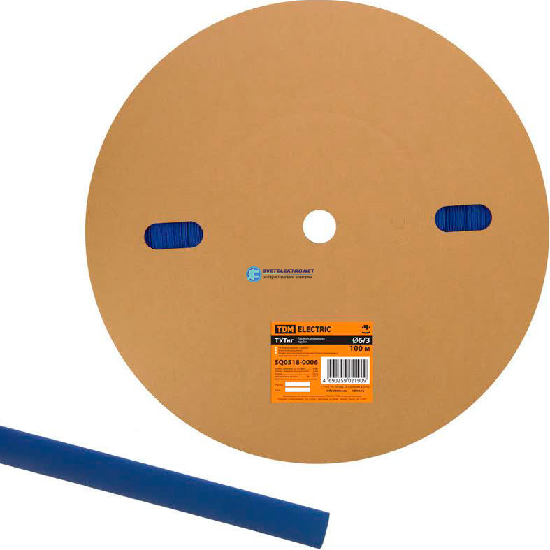 Термоусаживаемая трубка ТУТнг 6/3 синяя (100 м/ролл) TDM SQ0518-0006 TDM