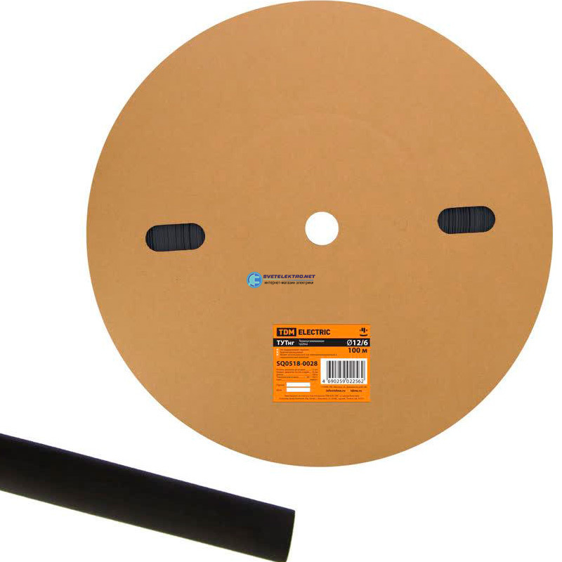 Термоусаживаемая трубка ТУТнг 12/6 черная (100 м/ролл), код SQ0518-0028, производитель TDM