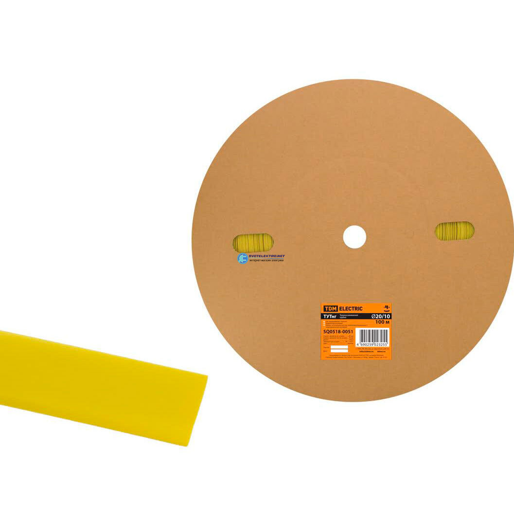 Термоусаживаемая трубка ТУТнг 20/10 желтая (100 м/ролл) TDM SQ0518-0051 TDM