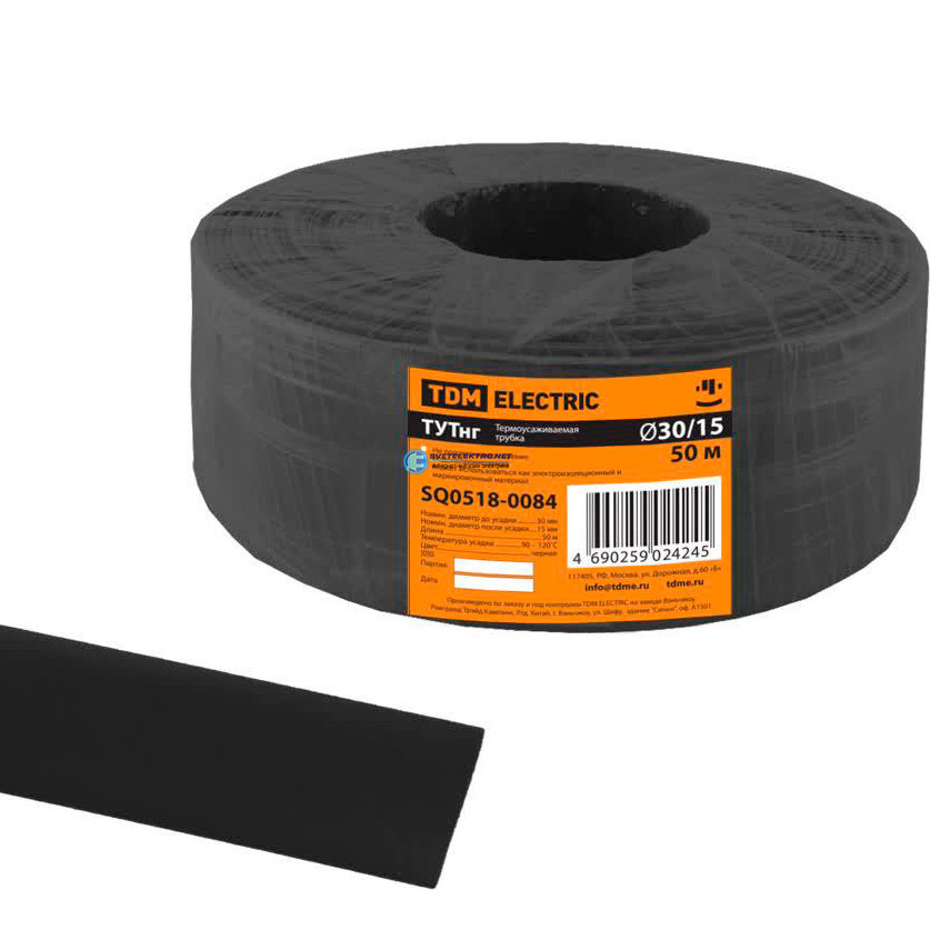 Термоусаживаемая трубка ТУТнг 30/15 черная (50 м/ролл) TDM SQ0518-0084 TDM