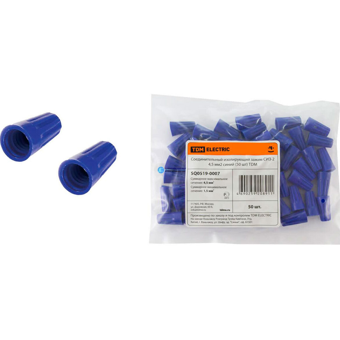 Соединительный изолирующий зажим СИЗ-2 4,5 мм2 синий (50 шт), код SQ0519-0007, производитель TDM