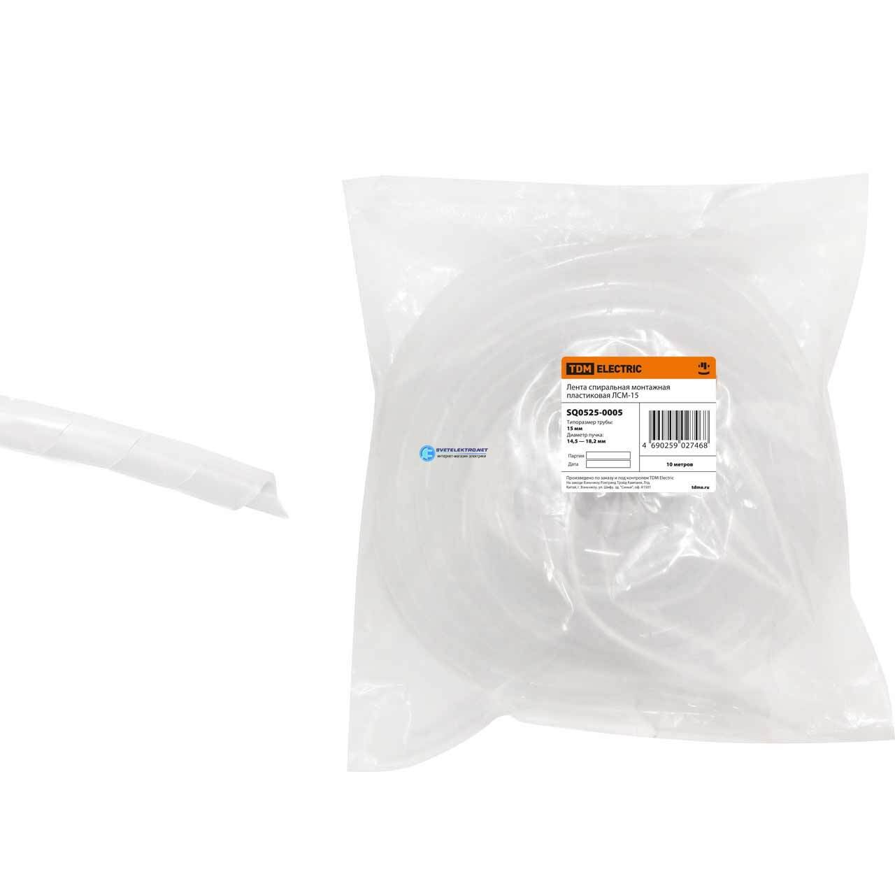Лента спиральная монтажная пластиковая ЛСМ-15 (10 м/упак) TDM SQ0525-0005 TDM
